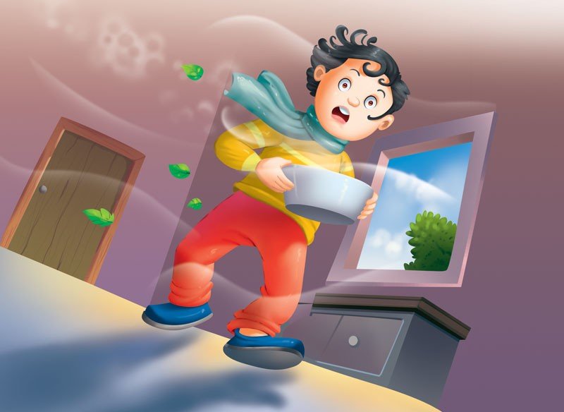 The boy went back and got some more meal, but again the North Wind blew it away. This happened three times till the boy was really angry. He decided to go to the North Wind and get the meal back.