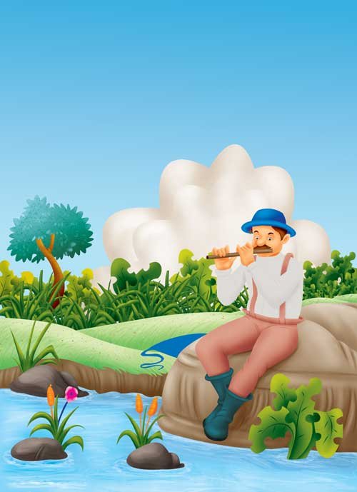 Once there was a fisherman who was a very good flutist as well. When he played on his flute, animals gathered around him to hear the sweet notes of his flute. One day, the fisherman thought to try his flute on the fish too. He was sure that the notes of his flute would attract the fish and they would come to him jumping out of the water. So, he went fishing taking his flute with him. He sat on a rock lying on the bank and began to play sweet tunes. He kept playing the flute for a long time but not even a single fish came out. The fisherman felt disappointed. He threw his flute on one side and cast his net into the water. Soon he was able to catch a great number of fish. He put them on the shore and they began to leap about for want of water. The angered fisherman said, “You rascals! You didn’t come out when I played the flute so sweetly. Now you will dance when I play on my pipe. After all, you have no other choice.”