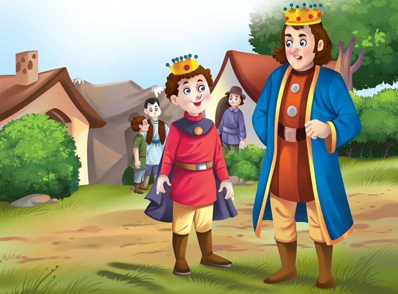 The King returned and saw the Prince teasing the innocent people of the village. Then, many other people started complaining against the Prince. The King was furious. But the clever Prince knew that there was a boy in the village who looked like him. He told his father that the similar-looking boy had done all these bad things. Now, the King thought that the boy in the village must be the Prince and wanted to teach him a lesson. So, the King took the boy back with him to the palace, and left the real Prince in the village. The boy enjoyed the luxurious life in the palace. On the other hand, the real Prince was living his life in the village. Finally, the Prince realised his mistake. One day, he met the other boy and regretted for everything he had done. The kind boy forgave him. Then, the boy confessed to the King that he wasn’t his real son. The King brought his son back and the two boys became friends.
