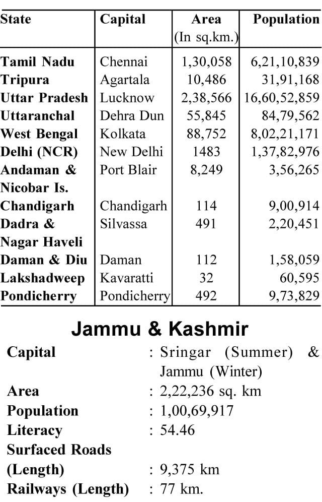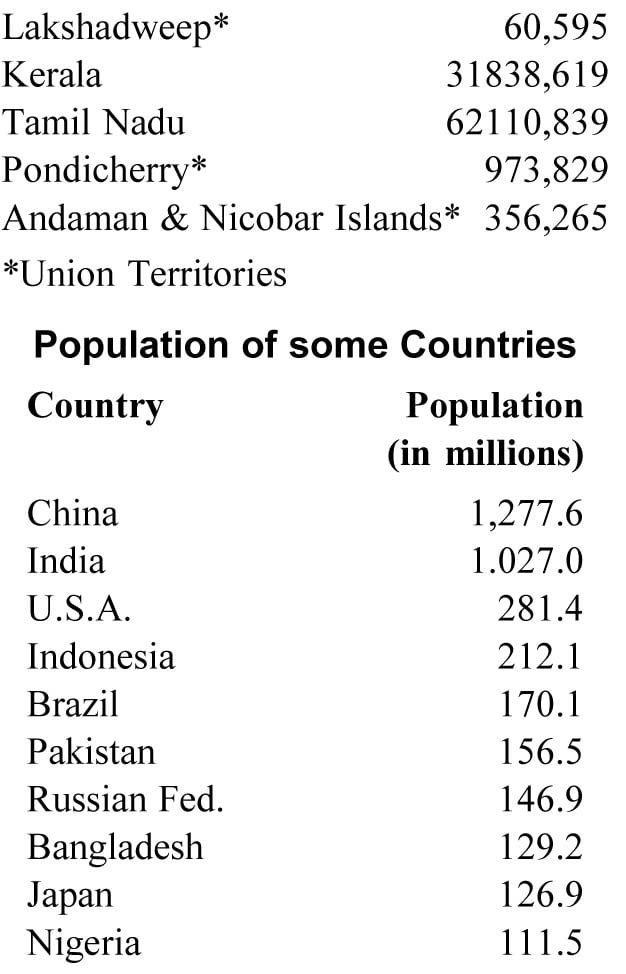 21. (PART-III) FACTS AND FIGURES OF INDIA / Geography / By Sahil Gupta POPULATION OF INDIA AND ITS STATES (2001)