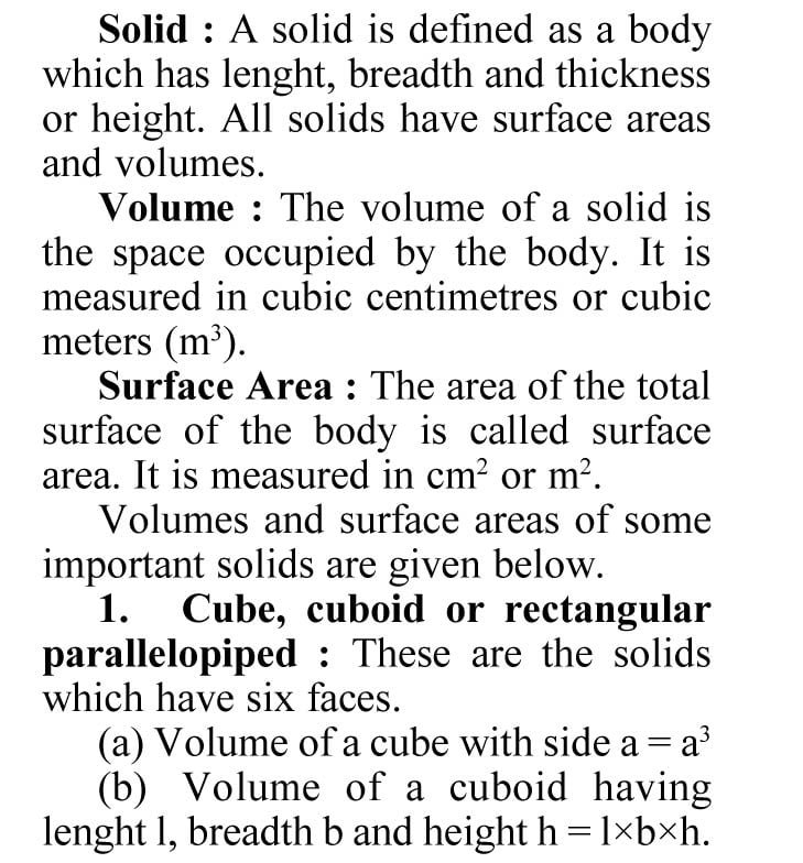 36. Area and Volumes of Solid Figures