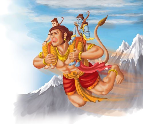 There was a deep bond between Hanuman and Rama which came to the fore during the rest of the story. Even Lakshmana, who was very cautious about anyone who came to his brother, knew that Hanuman was someone whom he could trust completely. With great love and devotion, Hanuman heard of the reason why the brothers had crossed the Pampa river and come to Rishyamooka to meet Sugreeva. He, in turn, told them the story of Sugreeva, who had been thrown out of his kingdom by his brother Vaali. Rama requested Hanuman to take them to Sugreeva. It was the only way they could find Seeta, they said. “And your help will give Sugreeva his wife and kingdom too,” said Hanuman. As it would be difficult for the brothers to climb the mountain, Hanuman expanded his form and put them on his shoulders to carry them up the hillside.