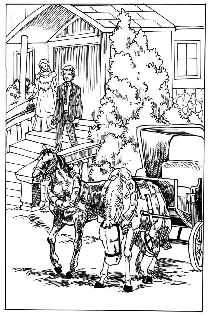 John led us to Earlshall Park. “Sir, you won’t get a better pair of horses than this one. They don’t even require a bearing rein or a whip. They are as swift and fast as wind,” John introduced us to Mr. York, the Earl’s coachman.