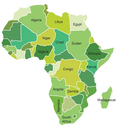 Major countries: Algeria, Congo, Kenya, Namibia, Sudan and South Africa