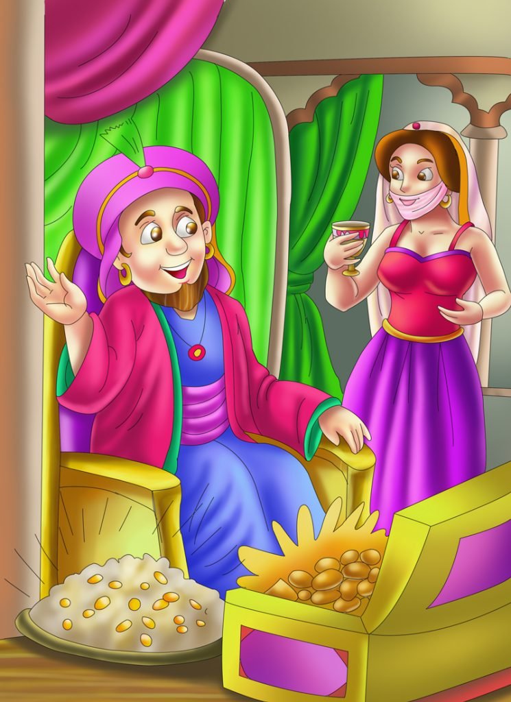 Among these things was also a beautiful slave-girl who had with her a precious vase of crystals containing red wine, goblets of gold and a crystal vase of ruddy wine, upon which a poem inscribed in gold.