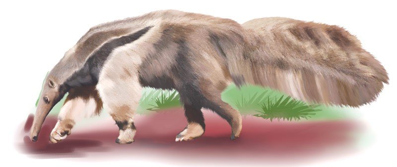They are of three types–the giant anteater, the silky anteater, and Northern and Southern Tamanduas. The silky anteater is arboreal in totality. The anteater has no teeth; its tongue has hook-like processes which help ants to stick to it. The animal is covered with a dense, longish fur–to act as armour against ant bites.