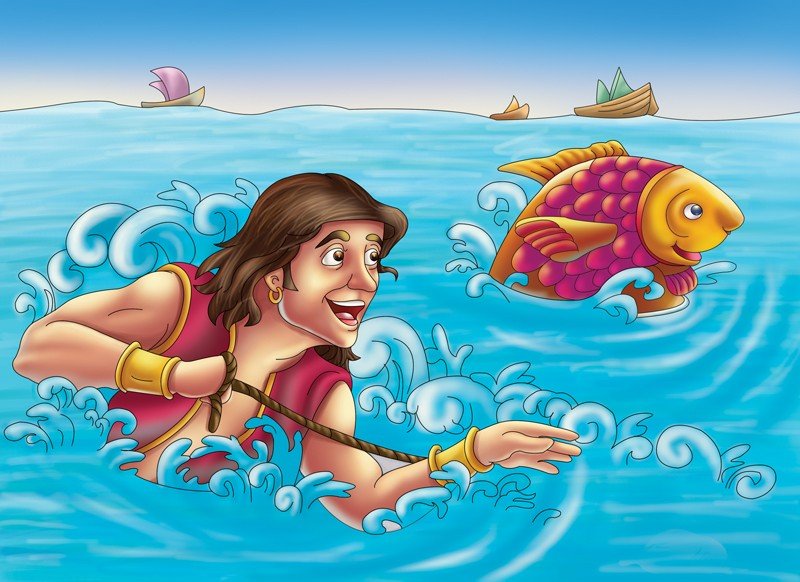 A fisherman used to make a good living out of his daily business. One day, he saw a huge fish which he thought would give him a relief from his daily job for a long period if caught. So, he decided to go along with the fish in the waters to catch him. He plunged […]