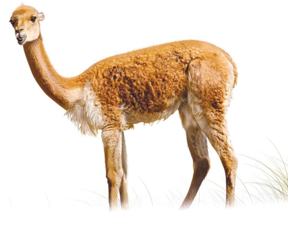 Common name : Vicugna Scientific name : Vicugna vicugna Family : Camelidae Native to : South America Interesting fact : They yield small amounts of fine wool, every three years. Conservation status : Least Concern It has a long, woolly coat which is tawny brown on the back, while the fur on the throat and