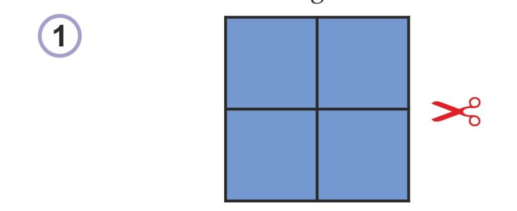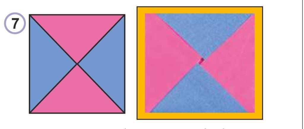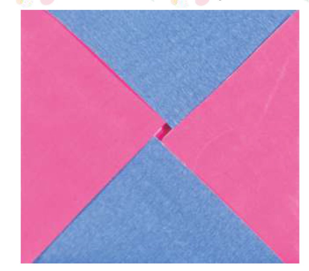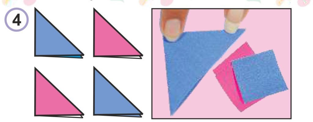 Fold 2 sheets so that the coloured side may be on the outside, and 2 more sheets with the coloured side on the inside.