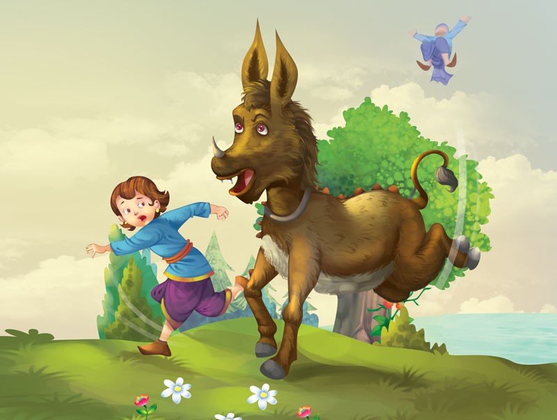 Dhenuka was a evil demon, who looked almost like a donkey. He lived in the tala groves with his fellow daityas. He was evil and ferocious. One day, the cowherds requested Lord Krishna and Balarama to get fruit from the tala grove. “Be careful, Balarama. The evil demon, Dhenuka, kicks anyone who enters the tala grove,” warned the cowherds. Lord Krishna merely smiled at this, for He knew that the reason. He was entering the tala grove was that Dhenukasura was about to die.