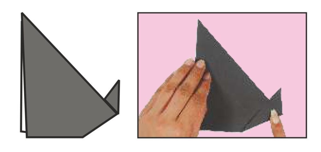 Fold it diagonally downwards.