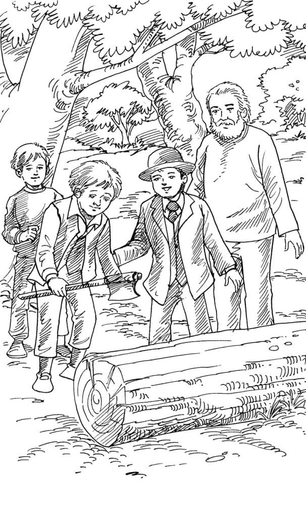 They then went up to the men who were at work, but here a new subject of admiration presented itself to Tommy’s mind. There was a root of a prodigious oak tree, so large and heavy, that half-a-dozen horses would scarcely have been able to draw it along; besides, it was so tough and knotty, that the sharpest axe could hardly make any impression upon it. This a couple of old men were attempting to cleave in pieces, in order to make billets for Mr Barlow’s fire.