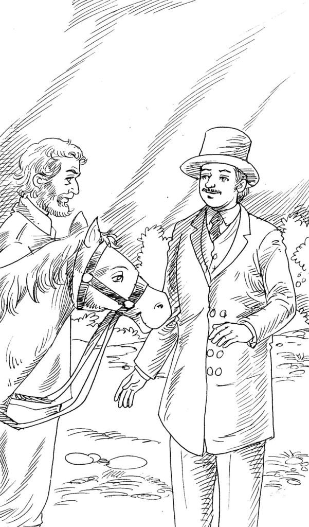Mr Barlow.—The gentleman was of the same opinion; “however, the horse-courser added:—’I do not mean, sir, to tie you down to this last proposal, which, upon consideration, you may like as little as the first; all that I require is, that if you are dissatisfied with your bargain, you will promise to pay me down the two hundred guineas which I first asked.’ This the gentleman willingly agreed to, and then called the steward to calculate the sum, for he was too much of a gentleman to be able to do it himself. The steward sat down with his pen and ink, and, after some time, gravely wished his master joy, and asked him, ‘in what part of England the estate was situated that he was going to purchase.’ ‘Are you mad?’ replied the gentleman; ‘it is not an estate, but a horse, that I have just bargained for; and here is the owner of him, to whom I am going to pay the money.’ ‘If there is any madness, sir,’ replied the steward, ‘it certainly is not on my side; the sum you have ordered me to calculate comes just to seventeen thousand four hundred and seventy-six pounds, besides some shillings and pence; and surely no man in his senses would give this price for a horse.’ The gentleman was more surprised than he had ever been before, to hear the assertion of his steward; but when, upon examination, he found it no more than the truth, he was very glad to compound for his foolish agreement, by giving the horse-courser the two hundred guineas, and dismissing him.”