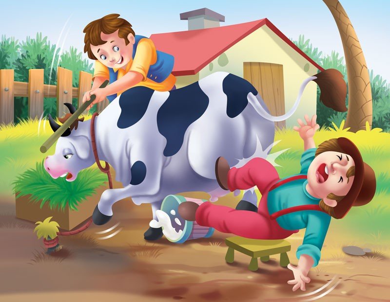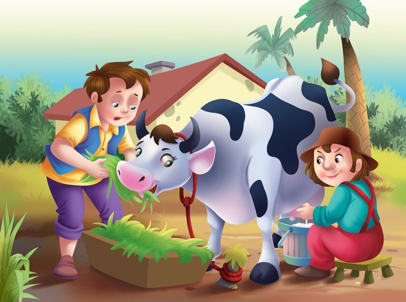 Jake fed the cow fresh grass and water. It gave a lot of milk. Hans got the milk which he sold and made a lot of money. But he did not share the money with Jake, saying, “I got the milk from my portion of the cow. The hind part is mine as per the agreement. Each of us gets the benefits only from his part.” Jake did not say anything.