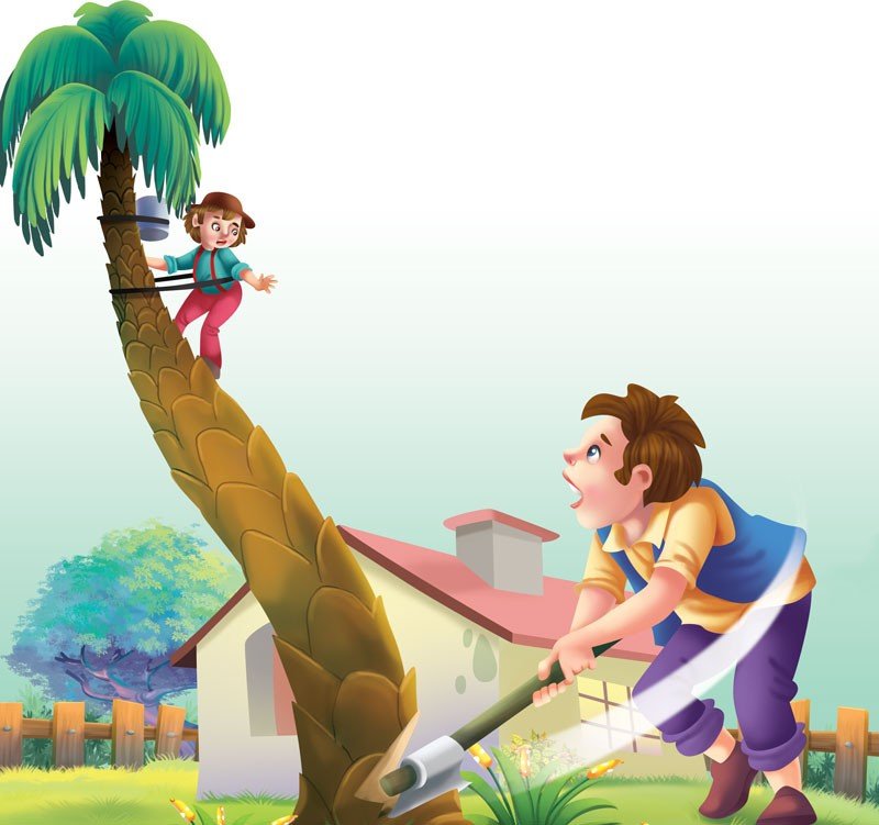 Now, Hans had taken the upper part of the date-tree. He made holes on the upper part of the tree from where a kind of sweet-smelling juice oozed out. The juice was collected in pots. Hans sold the juice, but again, did not share the money with his brother.
