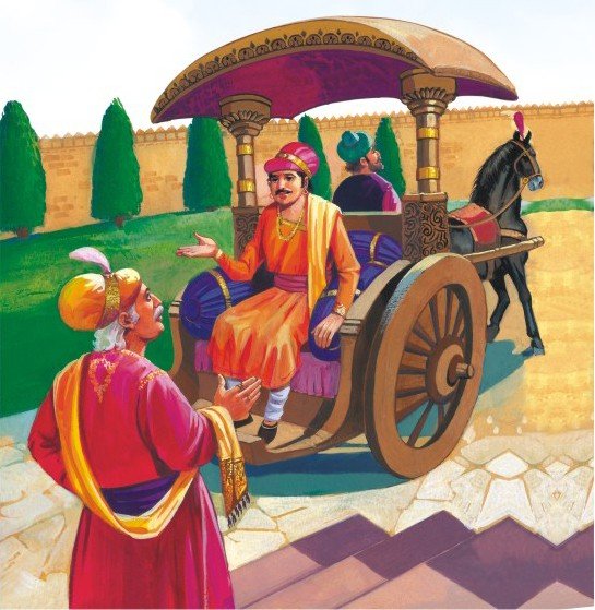 One day, when the Emperor was standing in the balcony, he saw a horse carriage coming towards the palace. He noticed Birbal sitting in it.