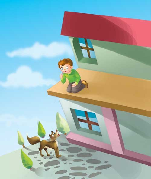 One day, a small boy, Greg, was sitting on the roof of his house. Suddenly, he saw a wolf passing below. Greg had heard many stories about a wicked wolf. The wolf would howl loudly in the night. When it howled, the children used to get scared. They would not sleep the whole night for the fear of the wolf. Greg wondered if this was the same wicked wolf that scared him every night. Just then, the wolf howled. Greg was not scared this time because he had seen the wolf. He did not fear the wolf, as he was perched on the top. He called all the children. The children assembled on the rooftop. Greg said, “Look friends, here is the wolf that scares us every night.” Suddenly, all of them started shouting at the top of their voices, “Thief! Scoundrel! Run back!” The alarmed wolf ran away. It never came back again.