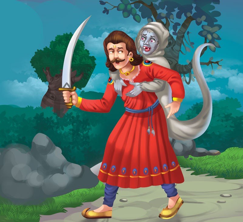 Baital laughed and said, “Vikram, you are indeed a judicious king. But as usual, you have spoken and I am departing from you.” Thus, Baital flew away from Vikramaditya’s shoulder with the King following him.