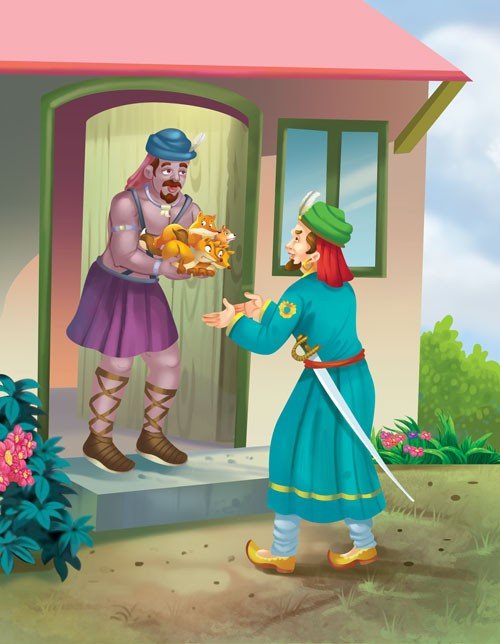 The benevolent Hatim could never leave any creature in distress. He went straight to the hunter’s house and said to him, “I have come a long way and I need your help. I am suffering from a rare disease that causes my joints to pain so much that I become immobile. My physician advised me to wash my body with the warm blood of a fox, and I shall recover. The villagers told me that lately you have caught a few foxes. Please sell them to me, so that I may be cured.” The hunter readily sold Hatim his catch, and he took them to the mother fox and fulfilled his promise. While Hatim was about to leave for his journey, the mother fox told him that one of her babies was very weak and needed human blood to survive. Hatim offered his blood. The grateful mother took a cupful and gave it to her baby, who recovered immediately.
