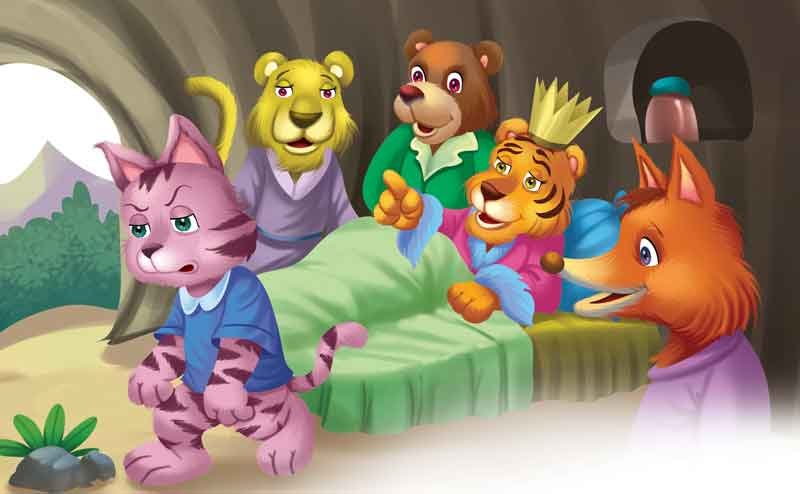 One day, the tiger was ill and some of the animals came to meet him. It was the custom to smoke the hookah with friends. But as he was sick, he asked the cat to light the hookah and bring it.