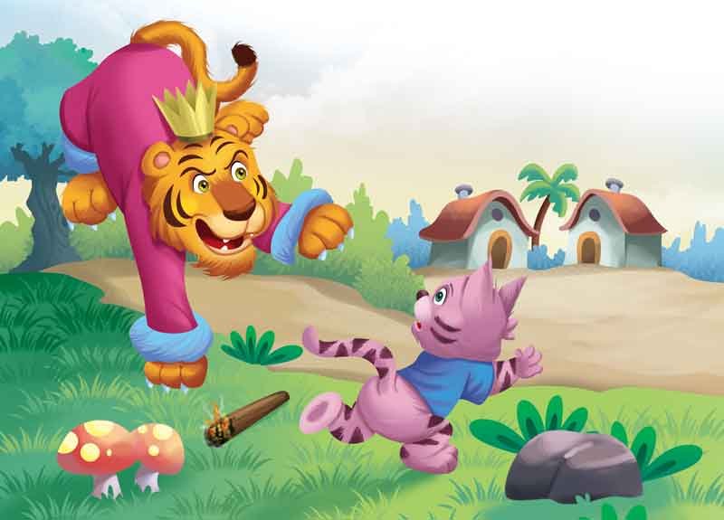 She dropped the firebrand in front of the tiger. But the tiger was so furious at the delay and the insult he had suffered that he roared and yelled at her. She was so terrified when he raised his paw to whack her, that she took to her heels.