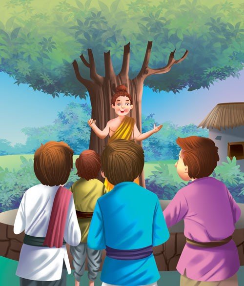 Once, the Buddha wandered from place to place till he reached Uruvela. On his way he sat down in a grove to rest. In that same grove was a party of thirty friends who were enjoying themselves and while they were sporting, some of their goods were stolen. Then the whole party went in search of the thief and, meeting the Buddha sitting under a tree, saluted him and said, “O Lord, did you see the thief pass by with our goods?” The Buddha said, “What is better for you: go in search for the thief or for yourselves?” The youths cried, “In search for ourselves!” “Well then,” said the Buddha, “sit down and I will preach the truth to you.” And the whole party sat down and they listened eagerly to the words of the Blessed One.