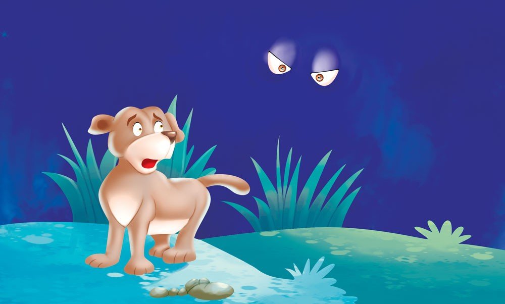Mint Dog stayed with his mother in the farmhouse. One day, there was no moon in the sky. It was a dark night. Mint Dog crept out into the farmyard. But his mother had warned him to stay indoors till he was old enough to go out at night. But he was impatient and did not listen. Somewhere an owl hooted. ‘Just an owl,’ a nervous Mint told himself. As he walked further, he could hear strange sounds from all sides. Then, all of a sudden, Mint stopped in his tracks. He saw two eyes shining in the darkness. Mint thought it was the fox but to his surprise it was his mother. He was relieved. Mother said to Mint, “Go inside! Why did you not listen to me?” Mint got scared and apologized immediately. Mint would really have to wait a long time to go out alone.