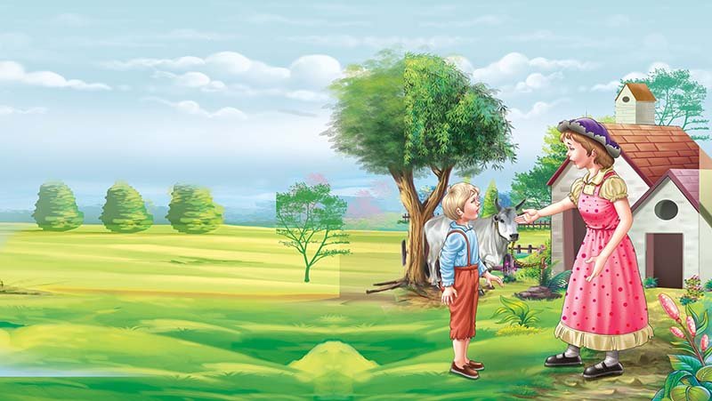 As time went by, the cow stopped giving milk. So one morning, Jack was sent to the market to sell it.