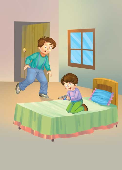 Jackson, the police officer, had two young kids, James and Kevin. Kevin was very young, while James was four years older than Kevin. Jackson loved his kids. He would play with his kids whenever he found time. Once, Jackson showed James his revolver and explained everything about it, including its safety lock. James was a responsible child who took care of his younger brother Kevin. One day, Jackson had accidently left his loaded revolver on his bed while he was taking a walk outside in a park. Kevin began fondling with the revolver. Suddenly, James was alarmed when he saw Kevin playing with the revolver. James rushed quickly from behind and closed the safety lock of the revolver that was open at the time. James knew the consequences, if Kevin accidently triggered the revolver. When Jackson came back, he was shocked at his negligence but proud of his son, James.