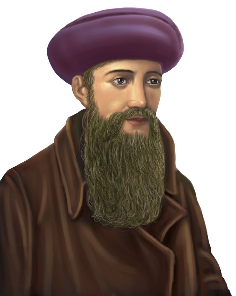 Johannes Gutenberg was born 1398, in Mainz, Germany. He is credited with the invention of the printing press. His father worked at the Mainz Mint and Johann used to go with him. He learnt tips from jewellers and goldsmiths about how to shape or how to make metal.