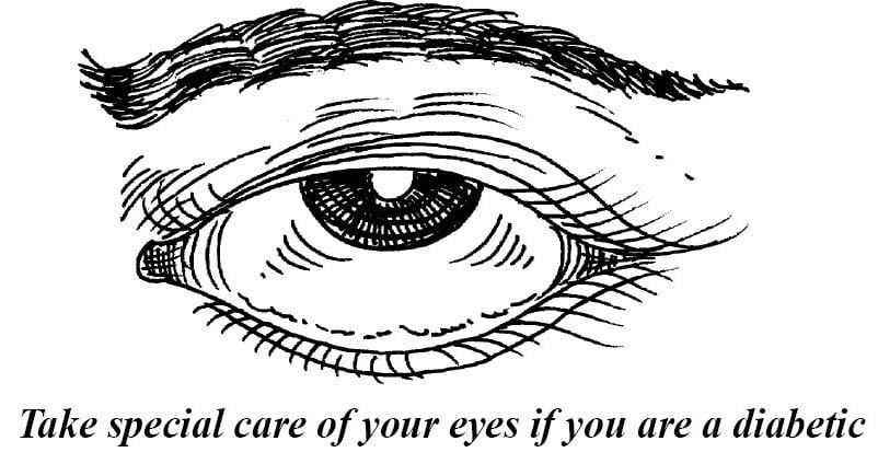 This above treatment consists of burning the effected area of retina with the help of laser rays so that not only is the rupture of blood vessels thwarted, but, even sepage of blood in eye fluids is saved. At times a diabetic on his own experiences vague symptoms like pain in eyes, cloudiness, split images or a sudden loss in acuty of vision. If this happen at any point of time, eyes should immediately be got tested.