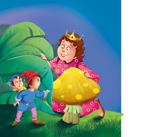 Princess Miranda was walking along the edge of the lake when she heard a voice saying, “Look at Mink!” ‘I wonder who spoke,’ thought the princess, ‘And who is Mink?’ She looked around and saw some elves standing around a toadstool on which one little elf was performing all kinds of acrobatic tricks! ‘This must be Mink!’ thought Miranda. The elves saw her watching them and suddenly ran under bushes. “I won’t hurt you!” called Princess Miranda. Mink peeped out and said, “Promise me.” Miranda promised and the elves came out one by one. “You are the princess, aren’t you?” asked Mink. “Yes, I am,” she replied, “May I play with you?” Mink thought about it. “You are bigger than we,” he said, “Will you be able to play with us?” “I’ll try!” replied Miranda. And everyone was surprised to see Princess Miranda followed by a small troop of elves returning to the palace!