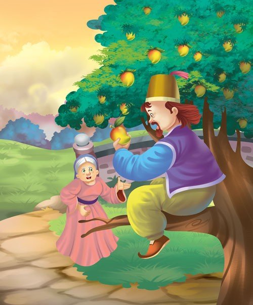 One day, Sheikh Chilli’s mother took Sheikh to a maulvi (religious scholar), to benefit from his advice. The maulvi talked to Sheikh about Allah’s greatness and how all creations, big and small, belonged to Allah. Sheikh pondered over the maulvi’s sayings and understood that all things belong to Allah. Next morning, he roamed around in a garden, admiring Allah’s creations -trees, flowers, birds, fruits, etc. He came to a mango tree, full of juicy ripe mangoes. He could not resist and climbed up the tree to pluck and eat the sweet mangoes. Just then, the gardener came and shouted on seeing Sheikh eating the mangoes, “Do you think these mangoes belong to your father?” Sheikh was not scared and said, “Yes, all trees are Allah’s and we are Allah’s children, the maulvi says so. So, these mangoes belong to my father.” The angry gardener was now amused!