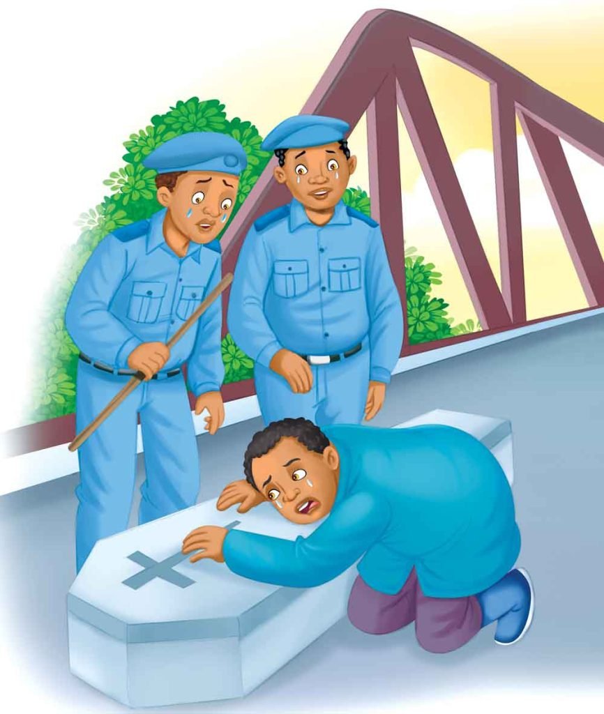 Long ago, there was a man named Aleke Gebre Hanna. One day, he decided to leave Addis Ababa and go to Gojjam. So, he collected all his money. As it was a huge amount, he put it in a sack and left. As soon as he arrived at the Blue Nile Bridge, he was scared to see the policemen as they might take away his money. So, he waited for a while and started thinking about the way he could save his money from being taken away. Finally, an idea struck him. He kept all his money in a coffin and acted as if his son had died. Thereafter, he started crying, “Birr, my son! Birr, my son!” The policemen heard his cries and felt sorry for him. They also started crying, thinking his son was dead and let him pass without looking what was inside the coffin. As he passed by them, he said, “Foolish policemen. I could deceive them so easily.”