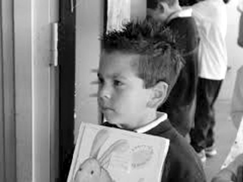 The journey to school went by far too quickly. Before I had time to prepare myself for the ordeal, mum stopped the car outside the school gates. I got out and walked inside. There were already lots of people playing in the schoolyard. I tried hard not to look at them, hoping perhaps they wouldn’t look at me.