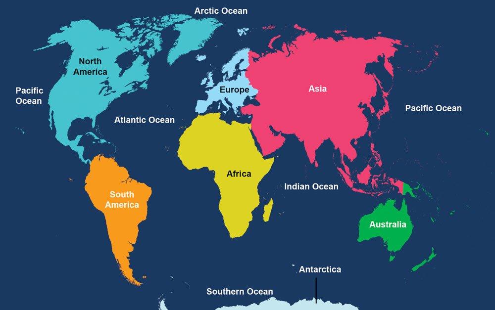 Atlantic Ocean: The Atlantic Ocean is the second largest ocean of the world. It covers about one-fifth or 20% of Earth’s surface. To the east, it separates two continents Europe and Africa, and to the west North and South America. The name Atlantic comes from the Greek mythology, which means the Sea of Atlas. On the equator, it gets divided into two parts: the North Atlantic Ocean and the South Atlantic Ocean. The Missouri-Mississippi, the Amazon, the Congo and the Nile drain into this ocean.