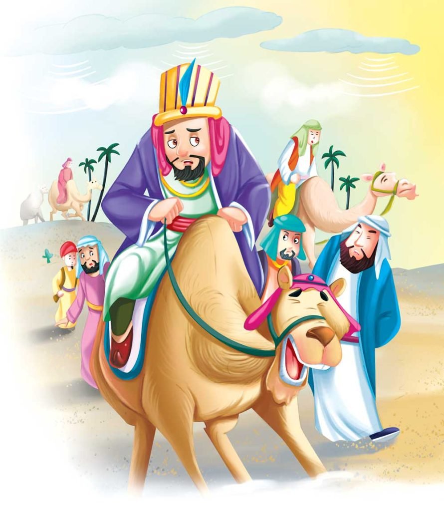 One of Abdullah’s camels was lost. He set off to look for it across the desert. A long, tiring ride over the sands brought him to a strange sight. High walls rose around a city and rooftops and pavilions could be seen over them. Hoping to find someone in the city surrounded with fort-like walls, Abdullah tied his camel outside and walked into the city. ‘Perhaps someone will be able to tell me about my lost camel,’ he thought. But entering the city he stopped, amazed. It was built of gold and silver bricks, decorated with rubies and other precious stones! The floors of the large rooms were covered with pearls and under the streets lined with fruit-laden trees ran clear streams. The city was fragrant with musk and saffron. But there was not a single living creature there. Abdullah collected some gold bricks, jewels and musk so that people might believe him and rode back.
