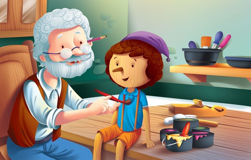 Long, long ago, there lived a poor old carpenter named Geppetto. He had no wife, no children and no family. He was alone. He was a very nice man and he spent his life making wooden toys for children.