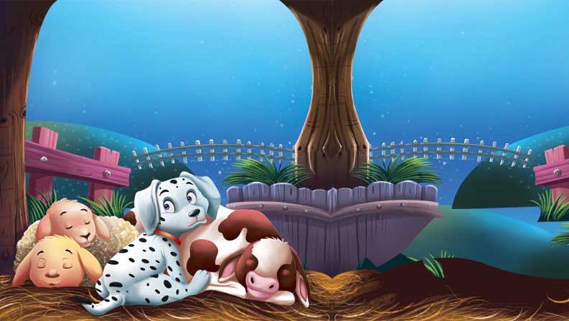 All the animals in the farm were asleep, except Pixie the dog.