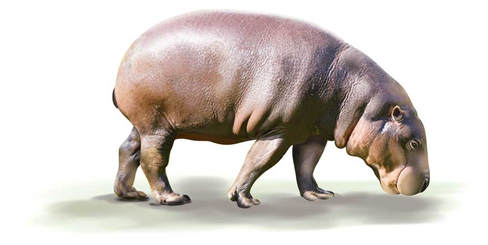 This small hippopotamus is native to forests and swamps. Pygmy hippos share the same general form as a hippopotamus. Their diet consists of ferns, broad-leaved plants and fruits. They use special tunnels connecting their resting and feeding place. Their life span in captivity ranges from 30 to 55 years, though it is unlikely that they live for such a long period in the wild.