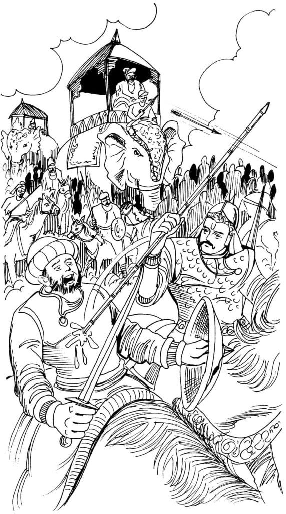 Just then his ears heard a sound he was praying for. It was the war cry of the soldiers of Maharana.