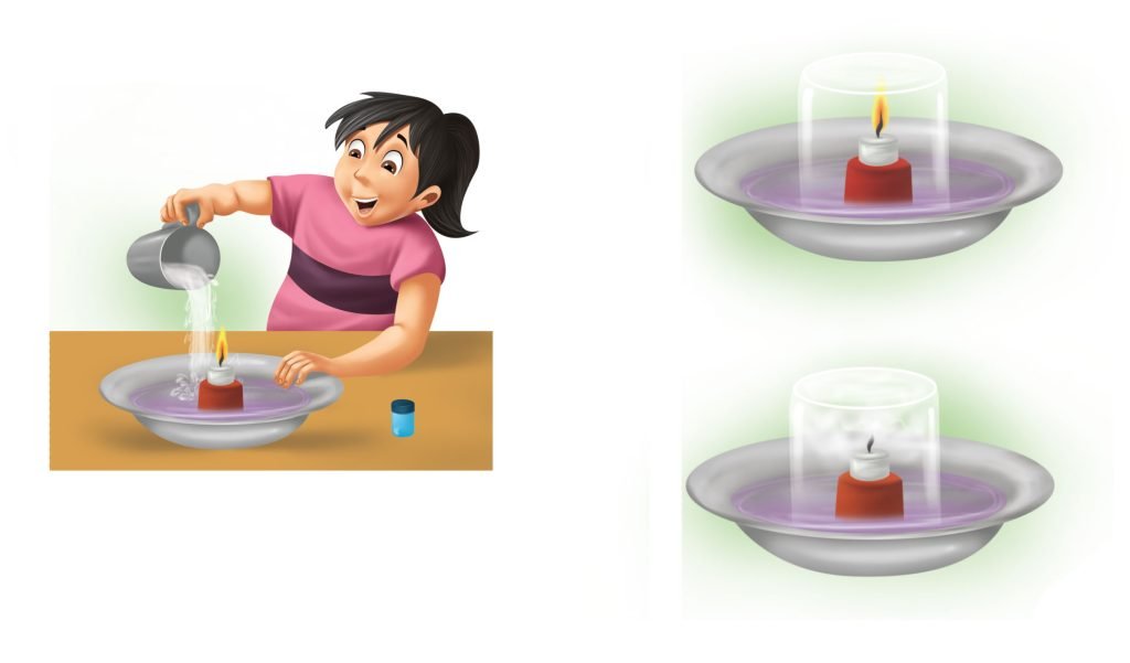 The water in the plate will begin to rise up into the glass and stay there even after the candle is extinguished. This is because the hot air created by the candle flame expands in the glass trying to push against the water. But when the candle goes out, the air cools and a vacuum is created which sucks the water into the glass.