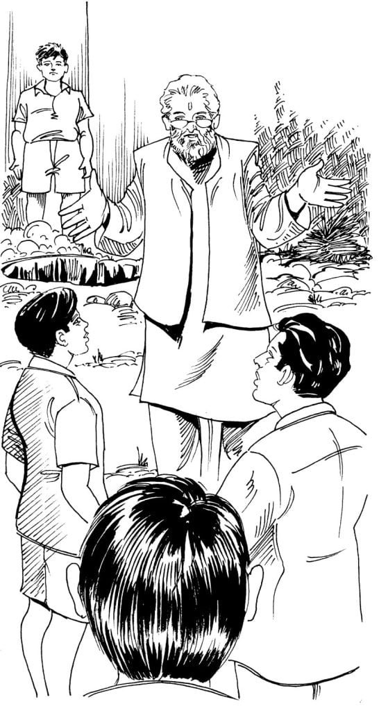He took his friends to his teacher’s house. The teachers popularly called ‘Guruji’ was not at home. He had gone to his village with his family as the school was closed for a holiday.