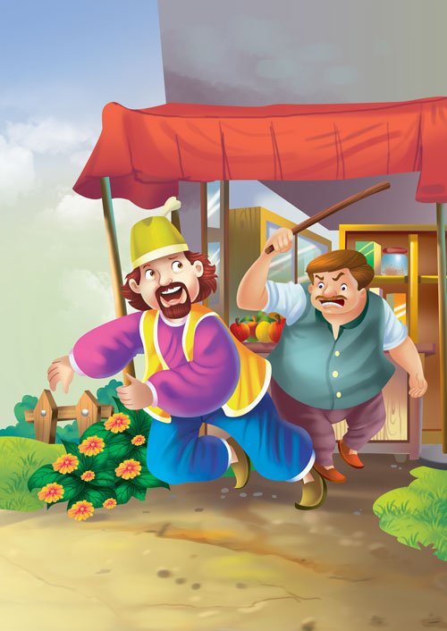 A tree-ghost had started bothering Sheikh, making him lose whatever small jobs he was getting. One day, as Sheikh was sitting sadly near the market square, a man walked up to him. He asked, “Why do you look so sad?” Sheikh said he was in need of a job. The man gave Sheikh the keys to his shop and told him to clean his shop for him. As Sheikh unlocked the shop and started cleaning, the actual shop owner came and hit Sheikh, asking him what he was doing in the shop. The earlier person was the ghost impersonating the owner! The enraged shop owner threatened to call the police and poor Sheikh ran away yet again! He then besieged Allah to help him. The ghost appeared before him, in human form. He told Sheikh why he was troubling him. Sheikh was very sorry about cutting down his tree, and promised never to harm any tree any more.