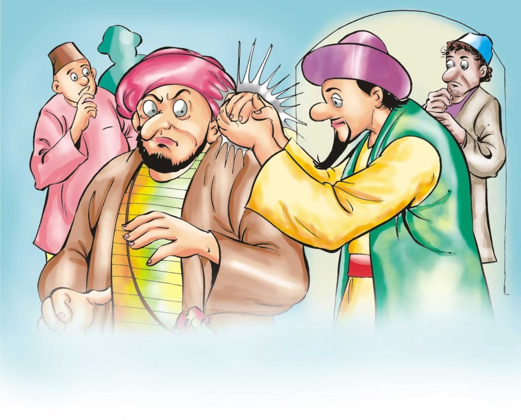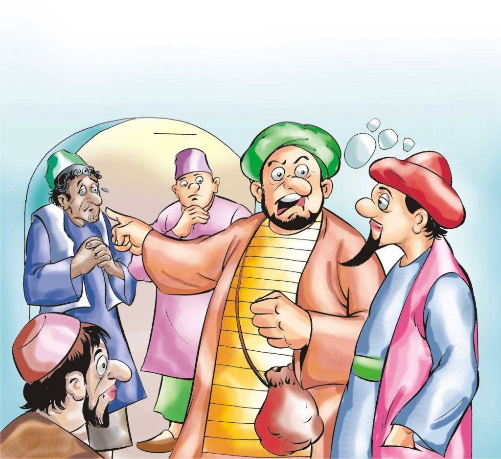 The poor man was very confused and embarrassed. Maybe, like Mulla, he too had no spare money for food. Mulla’s heart went for the humble man who was being bullied by the greedy meat shop-owner.