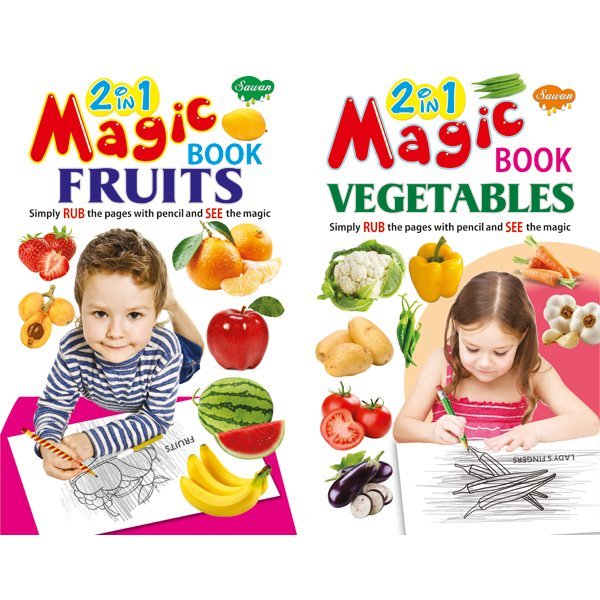 | Sawan presents 2 in 1 Magic Book: Fruits-Vegetables, a fun creative book for children. Discover the natural curiosity and enthusiasm of early learners with this book of art and craft. The series of 2-in-1 Titles Contains topics like Alphabets-Numbers, Cartoon-Toys, Flowers-Birds, Fruits-Vegetable, Vehicles-Historical Monuments and more. Just Rub the water with a brush and see the magic as colourful pictures appears on the Blank Page. |