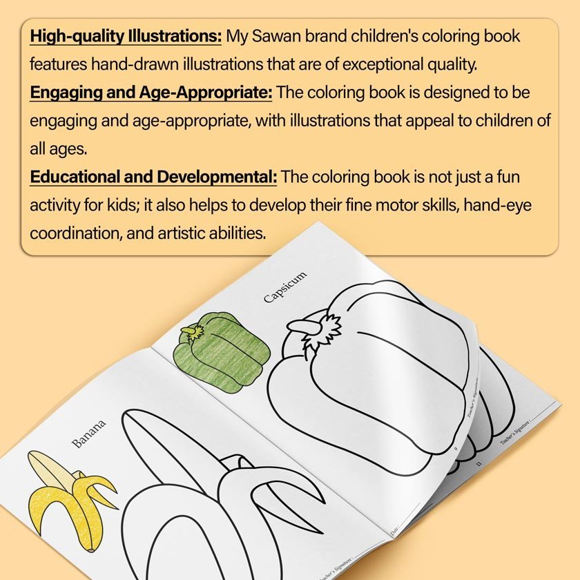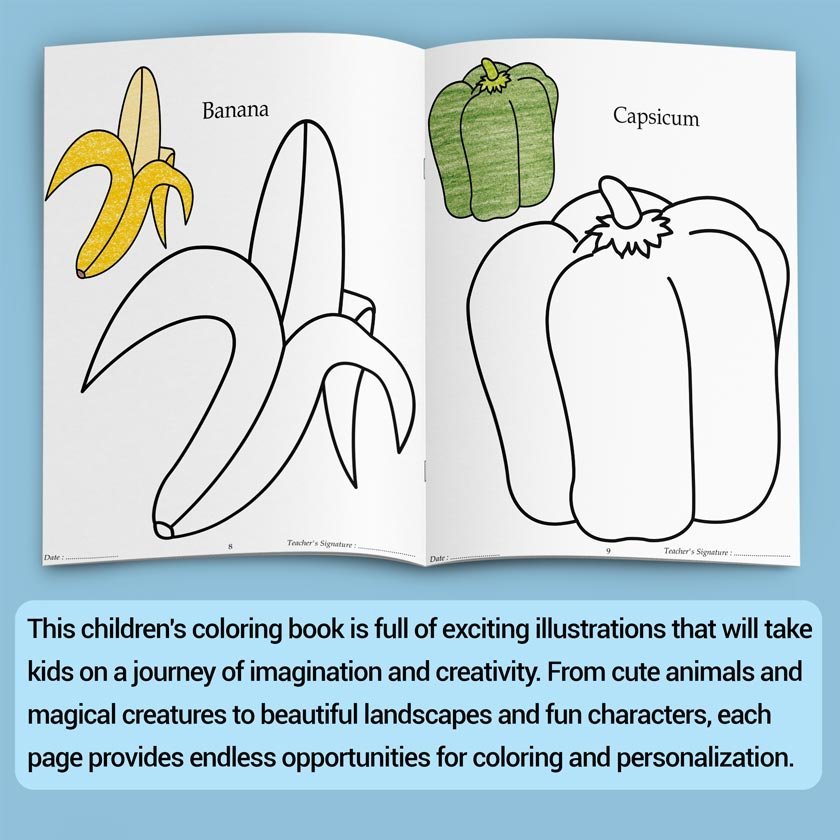 Introduce your child to the wonderful world of fruits and vegetables with the “Fruits & Vegetables Colouring Books for Kids.” This engaging colouring book features nutritious fruits and vegetables, including apples, bananas, carrots, and tomatoes. Measuring 11″ x 8.75″ in size, it provides ample space for young artists to add vibrant colours and explore the beauty of nature’s bounty. Spark their imagination and cultivate a love for healthy eating with this captivating colouring book.