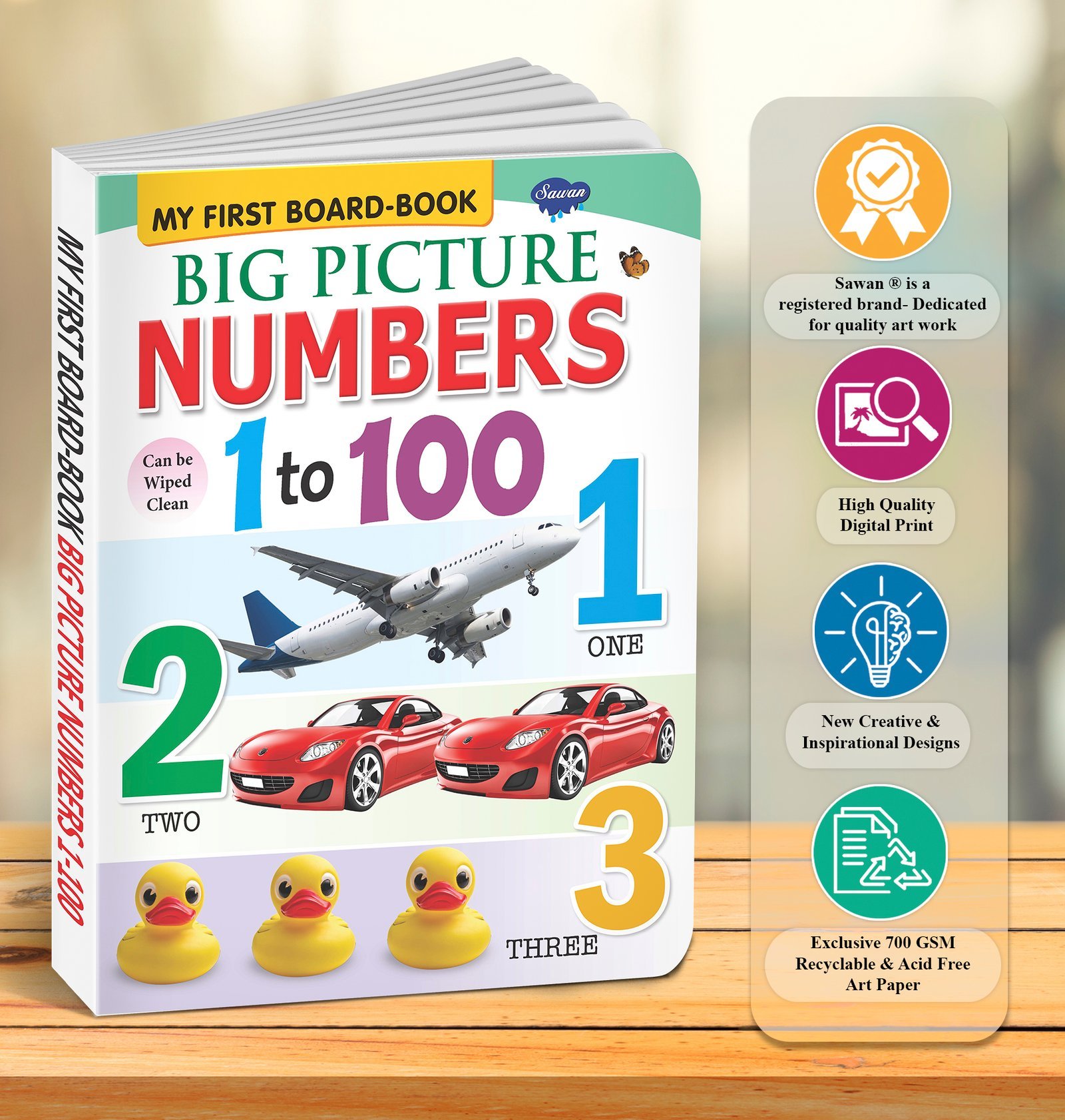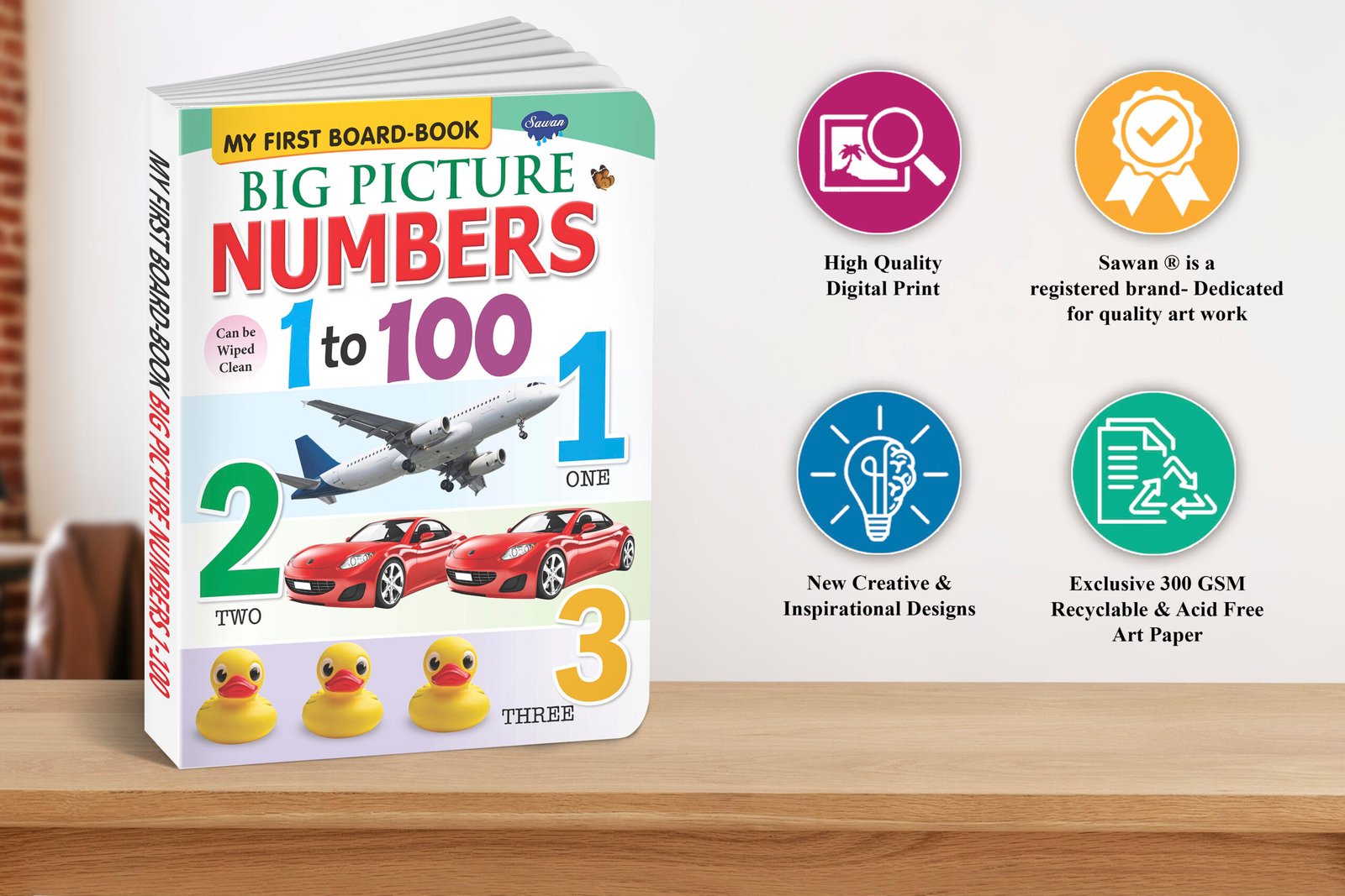 “Big Pictures: Numbers 1 to 100” is an engaging and educational board book from the Sawan Books series. With around 30 pages, this book features large and colorful illustrations of numbers 1 to 100 that will help young children learn to count and recognize numbers. The book is made of durable board paper and features a laminated finish for added protection. It is an excellent early learning resource that is perfect for parents and teachers to use with young children.