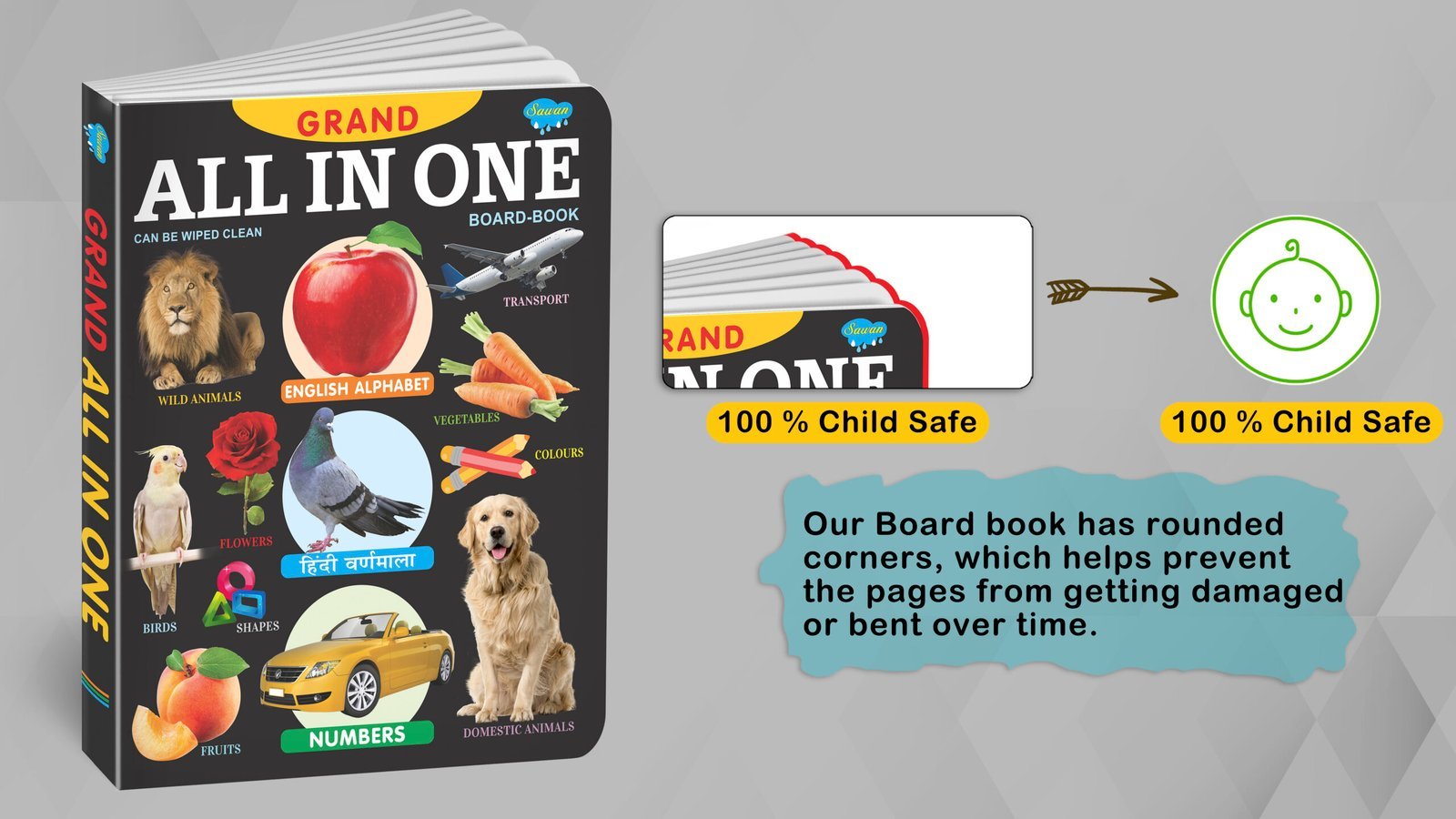 Sawan presents Grand All in One. My First Board Book is specially designed for preschoolers. Key features are- One picture on each page and Vibrant, colourful, big pictures with bold letters to attract and keep the kids engaged. This book is a great platform to kickstart a child’s learning and let him have fun with it, so it goes a long way.