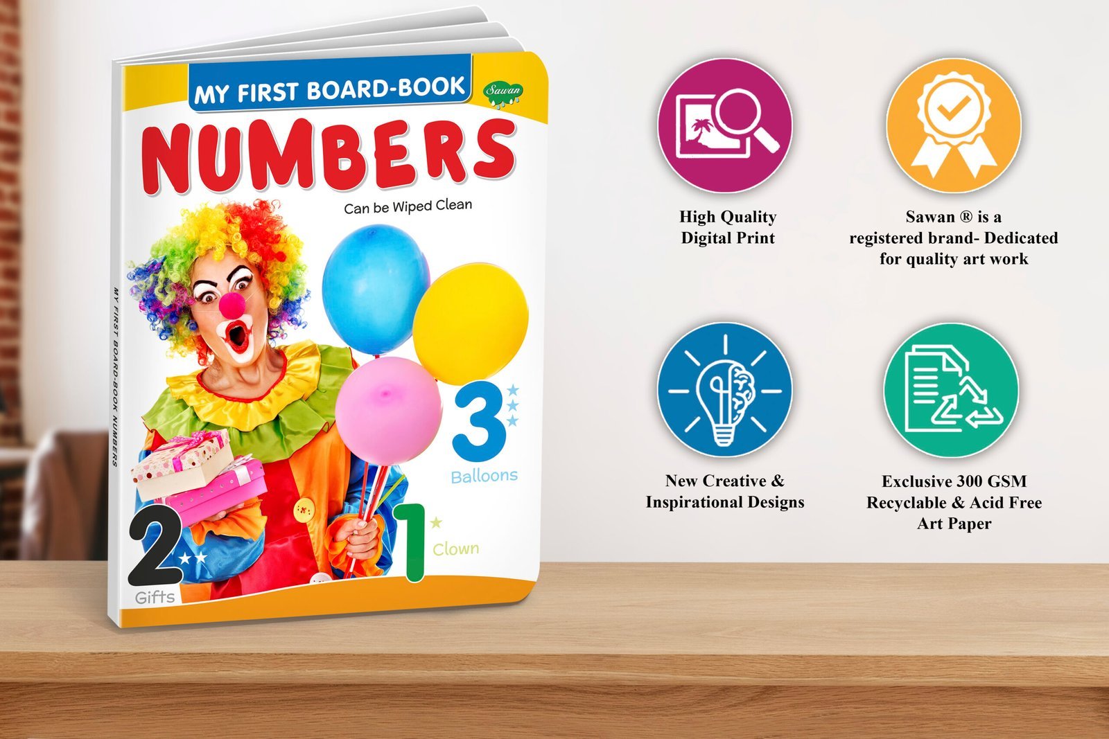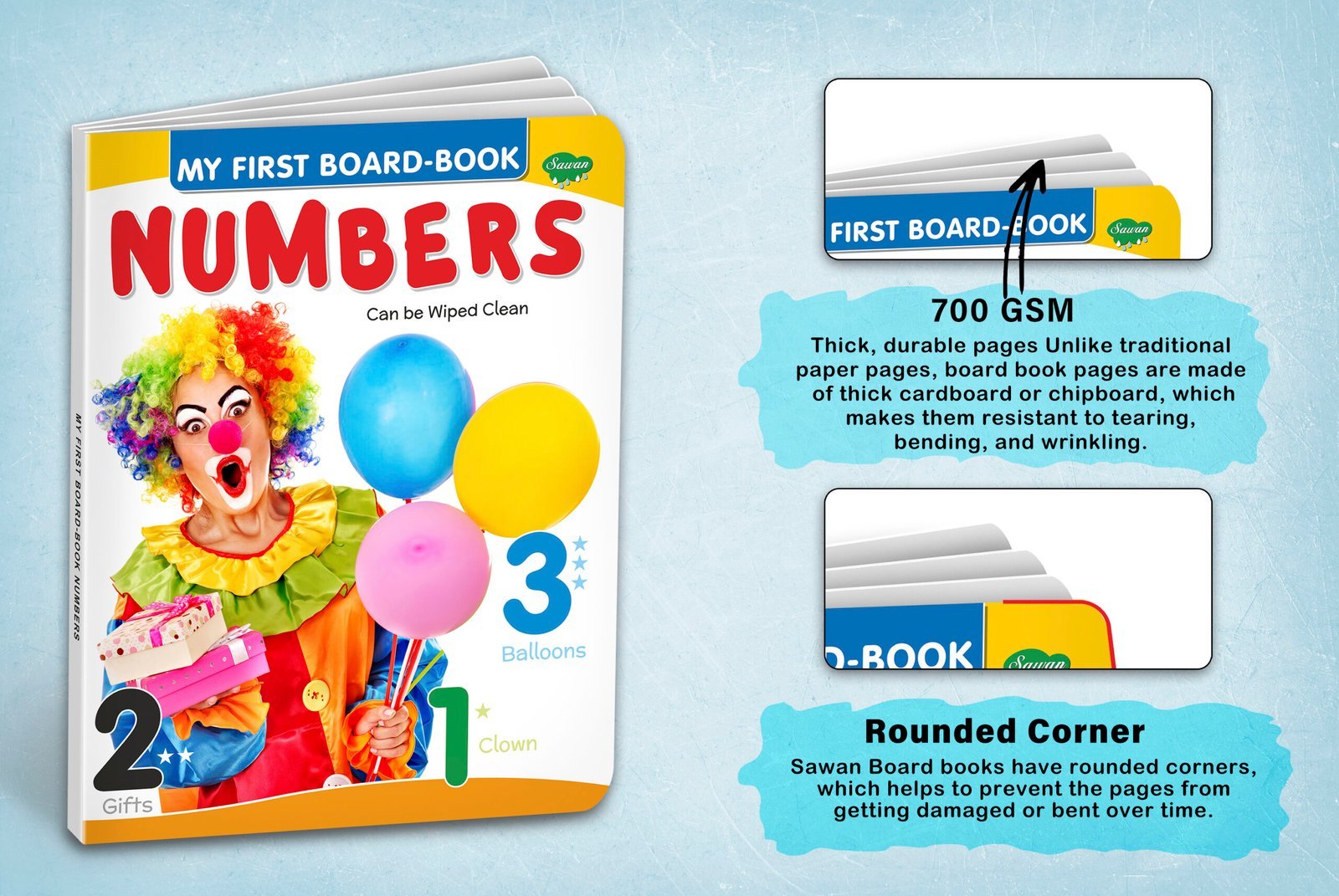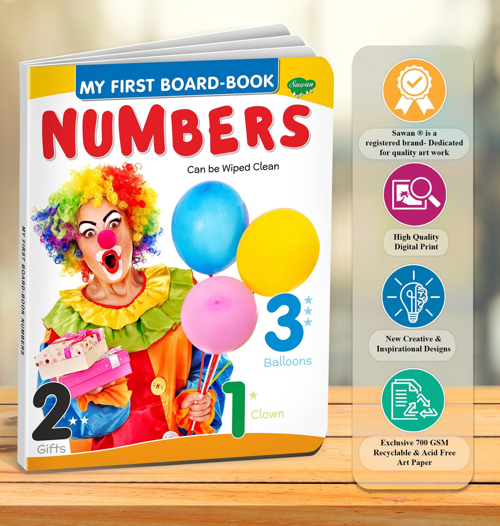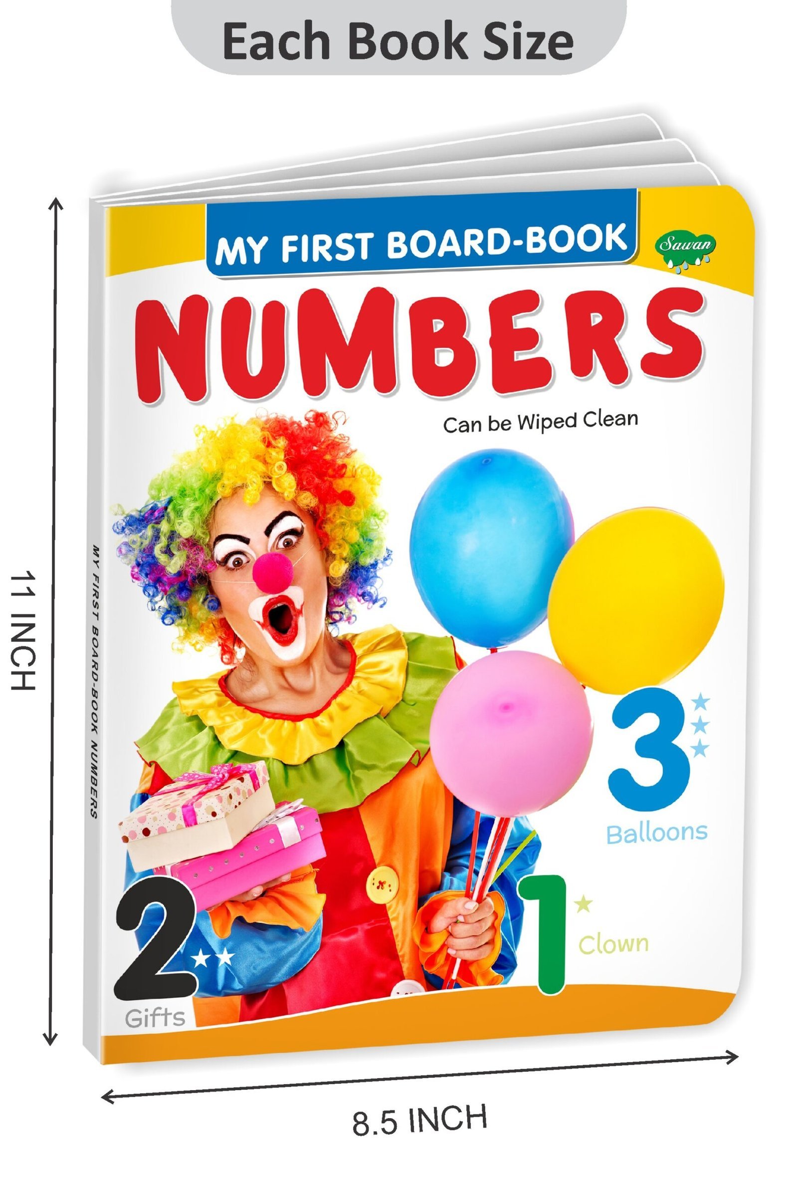 “Numbers” is an early learning board book from the “My First Board-Book” series by Sawan Books. This board book, with around 8 pages, features realistic and colourful pictures of numbers and a simple and easy-to-read text, is perfect for kids. Made of high-quality board paper, this four-colour and laminated book is designed to help young learners develop their basic counting skills and learn numbers in a fun and interactive way.
